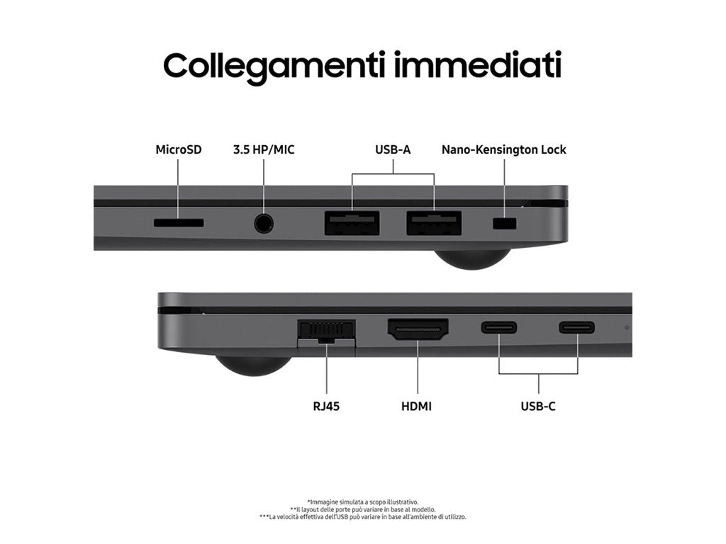 Il Galaxy Book5 NP754XHD-KD2IT rappresenta un notebook equilibrato per utenti che cercano portabilità, potenza e versatilità. Con il processore Intel Core Ultra 5, 16 GB di RAM e SSD da 512 GB, offre performance solide per applicazioni office, navigazione, editing leggero e multitasking. Il display da 15,6" Full HD assicura comfort nella visualizzazione, mentre la dotazione grafica e di porte lo rende adatto anche per lavoro creativo, studio o uso multimediale.
